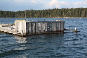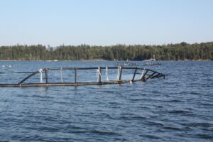 BWA’s president serves on the Board of Directors of the Friends of Blue Hill Bay. This past summer he and the board president of FOBHB, skippered the organization’s Grady White to the southern part of the bay to photograph an abandoned Mussel Farm with the hope of having it removed from the waters adjacent to Bartlett Island off MDI. The photographs were emailed to Senator Nicole Grohowski and Representative Nina Milliken requesting their influence with the Maine Department of Marine Resources to expediate removal of this unsightly navigational hazard and potential source of pollution. Although FOBHB was not involved in the planning, the equipment was removed by Cooke Aquaculture as it was formerly the infrastructure of a finfish pen. We have not verified whether it was ever used as such but its conversion to raise Mussels was abandoned by the former lease holder. DMR via email informed Tom Adamo that it was private property, no longer located on the lease site therefore it was not their responsibility. This collaboration with members of BWA and FOBHB had a favorable outcome.